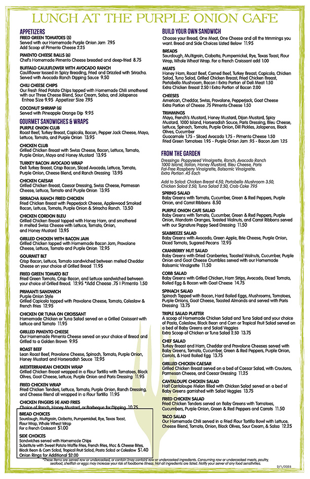 *Please note that menu items and pricing are subject to change due to availability and our suppliers.