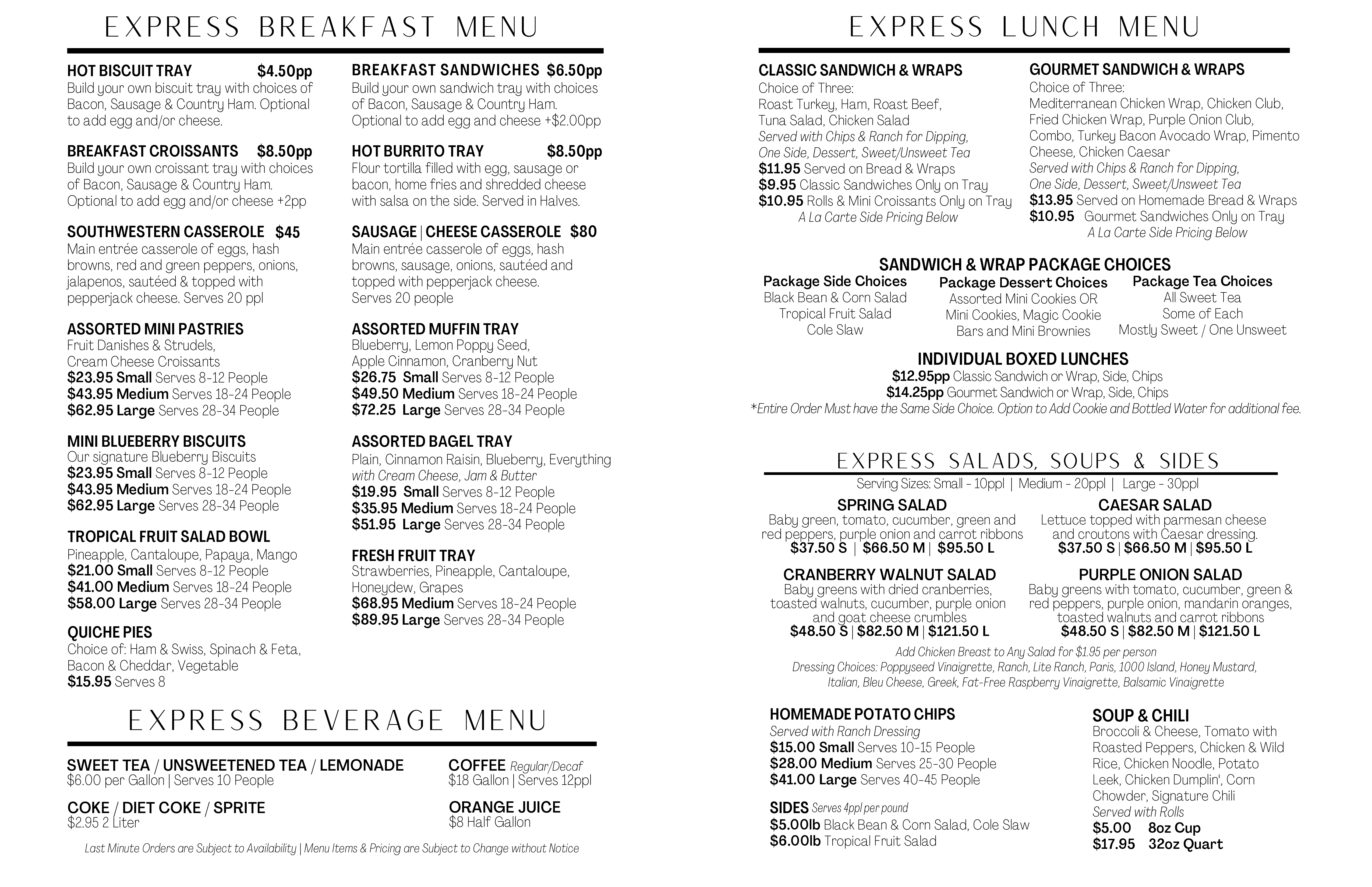 Download Our Express Catering MenuFor more details and to place your order, please call us at (910) 755-6642 ext 2